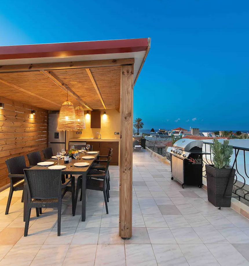 The house provides all its comfort you need. it has a fully equipped kitchen with a washing machine and outside BBQ.