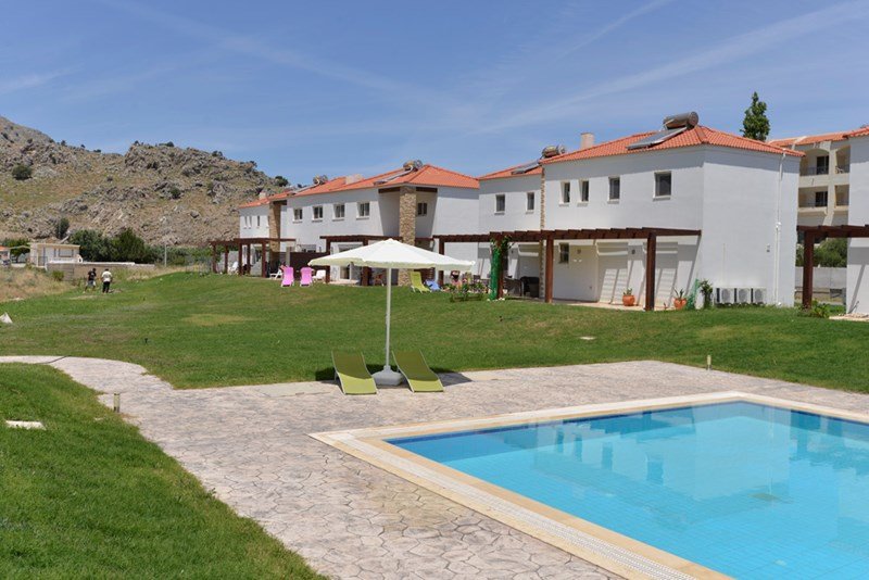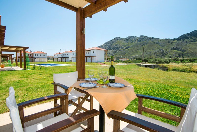 Modern Greek-style villas only 300 metres from the beach and with a beautiful view of the surrounding mountains. Cosy semi-detached houses with modern comforts.